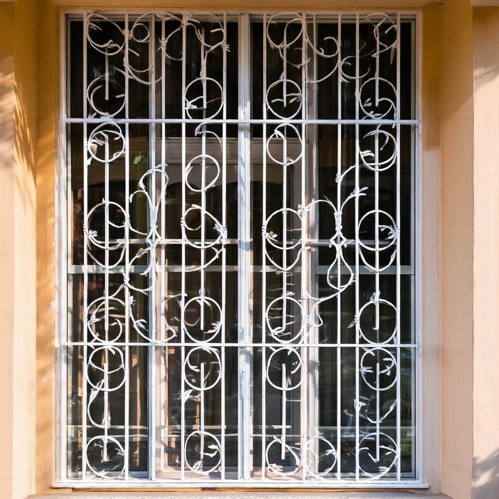 Pergola kayu-besi kombinasi dan teralis jendela dengan desain artistik untuk mempercantik rumah.